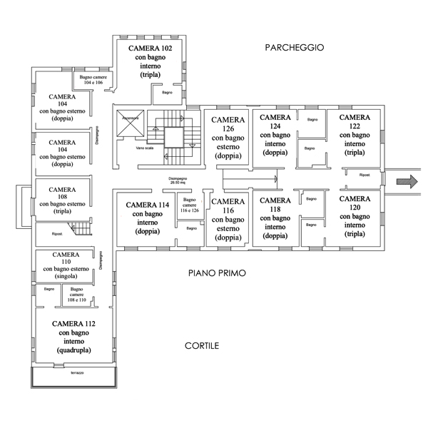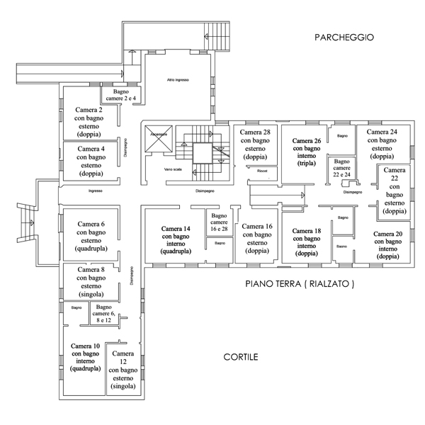 La struttura dispone inoltre di un ampio parcheggio interno gratuito con 25 posti auto (fino ad esaurimento posti).